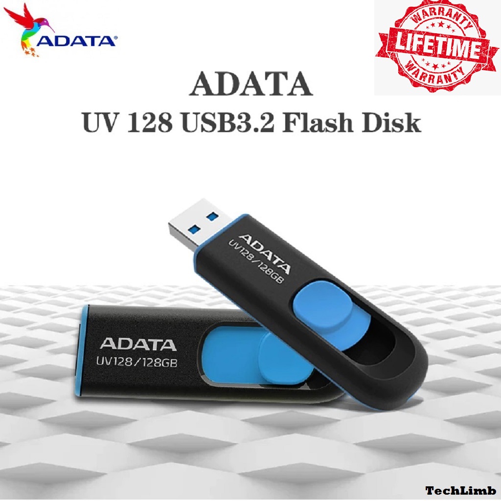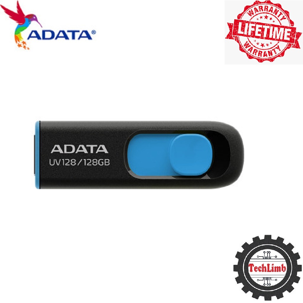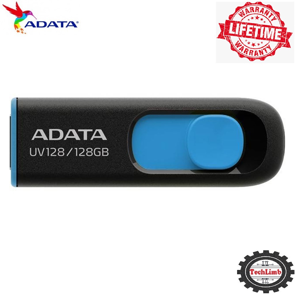 ADATA UV128 128GB USB 3.2 High Speed Pen Drive – AUV360-128G-RBK Model – Sliding Capless Mechanical Design – Black Blue – 100MB/s Read Speed – Reliable Storage for Laptop PC & Smart TV – 5 Year Official Warranty | Buy Original from TechLimb Official BD